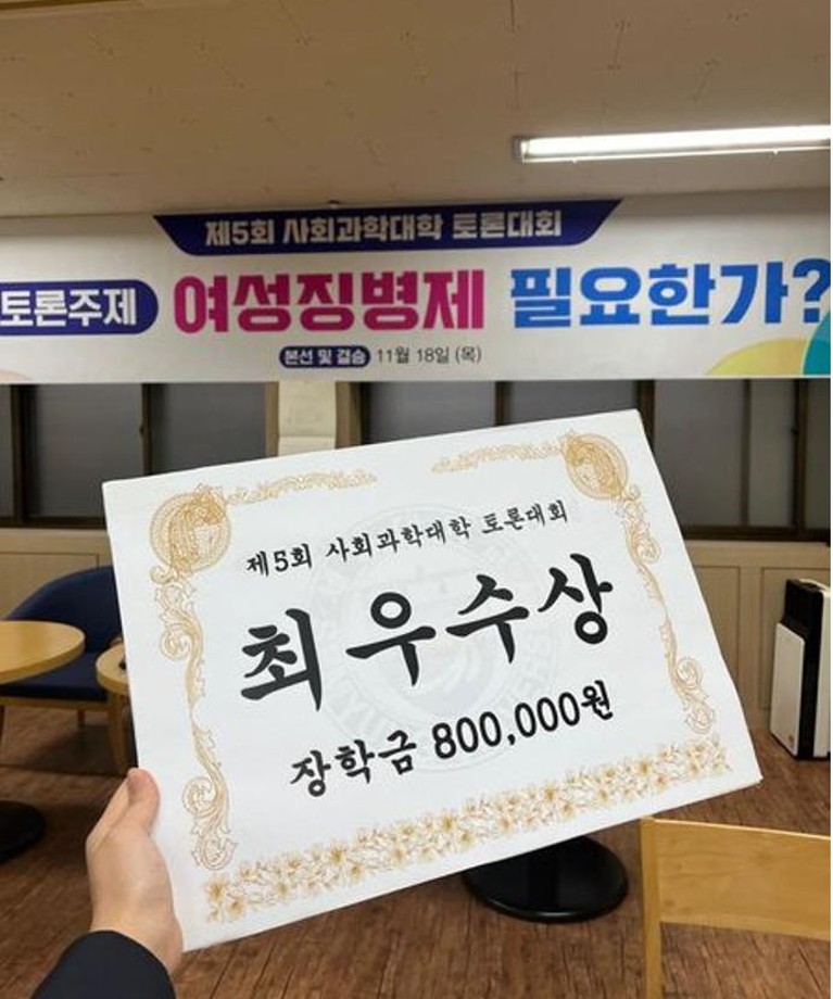 지난 11월 18일 진행되었던 [제5회 사회과학토론대회]에서 19학번 허한, 21학번 이호준 학생이 최우수상을 수상하였습니다!!