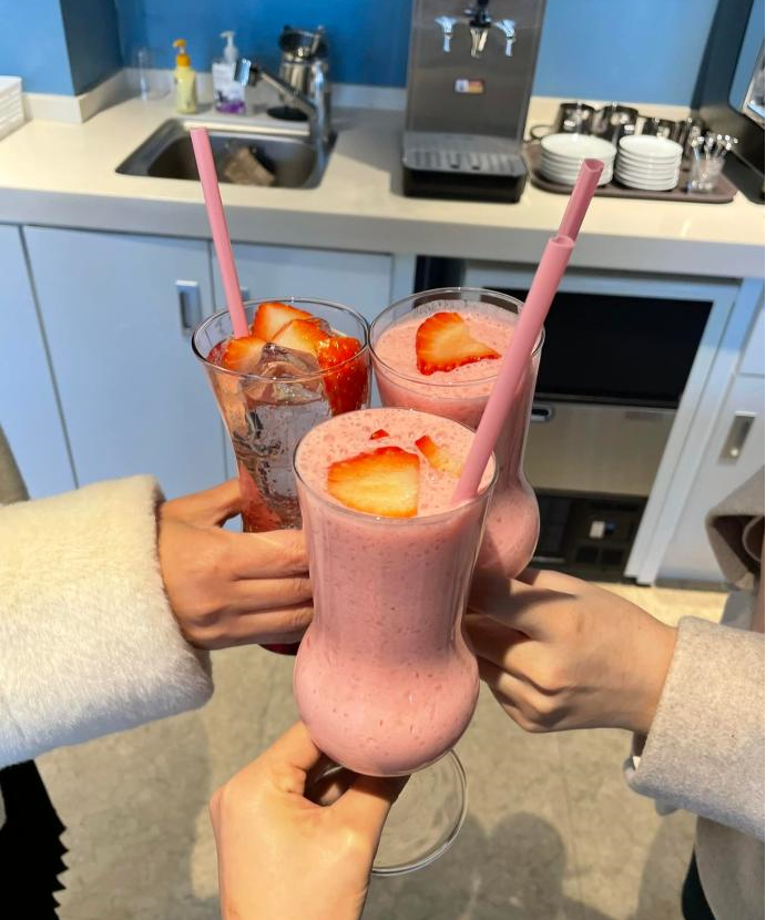 특히, 식음료 서비스 실습 시간에는 고등학생들이 직접 애프터눈티 세트와 딸기에이드, 딸기 요거트 스무디, 카페 라떼 등 다양한 음료를 만들어 대학생 멘토에게 서비스해 주어 감동을 주었습니다.