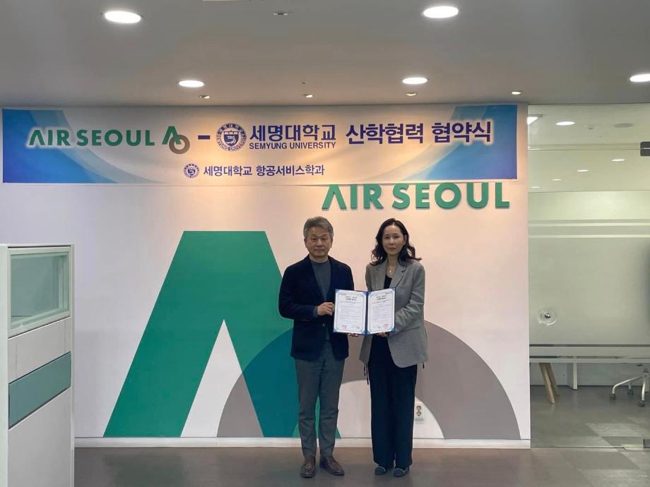 세명대학교는 2월 27일 에어서울 본사에서 에어서울과 산학협력 협약을 체결하고 항공 산업 분야의 전문 인재 양성을 위해 상호간의 협력을 약속했습니다. 👏