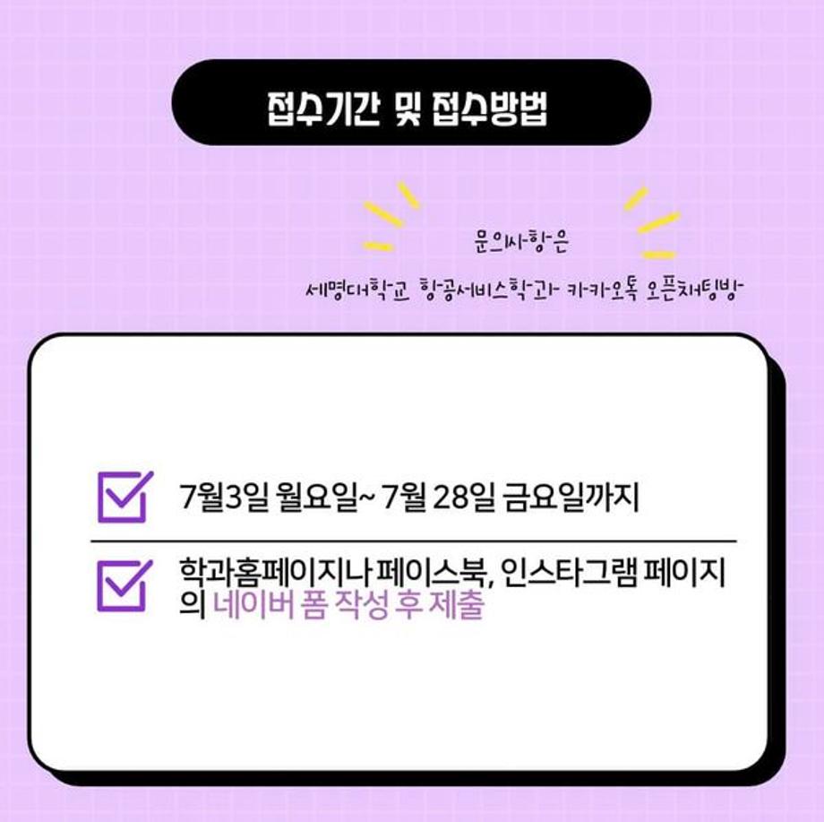 1️⃣ 세명대학교 항공서비스학과 홈페이지 및 SNS 계정에 접속합니다.