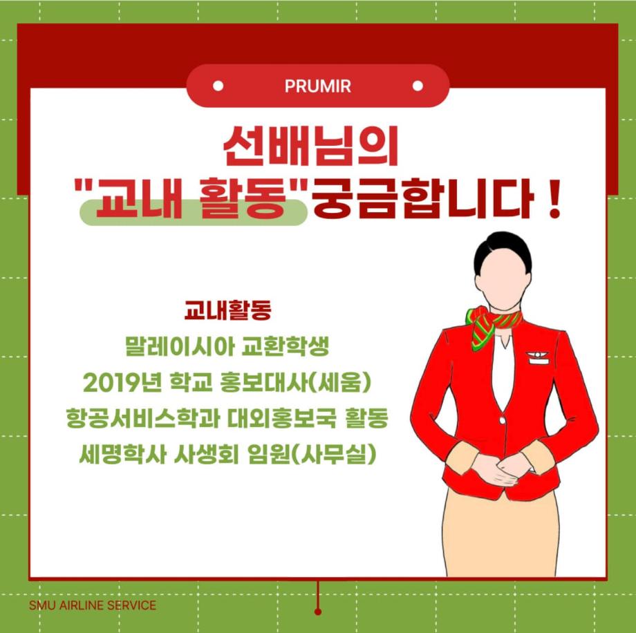 안녕하십니까 세명대학교 항공서비스학과 온라인 홍보국 💙푸르미르💙입니다