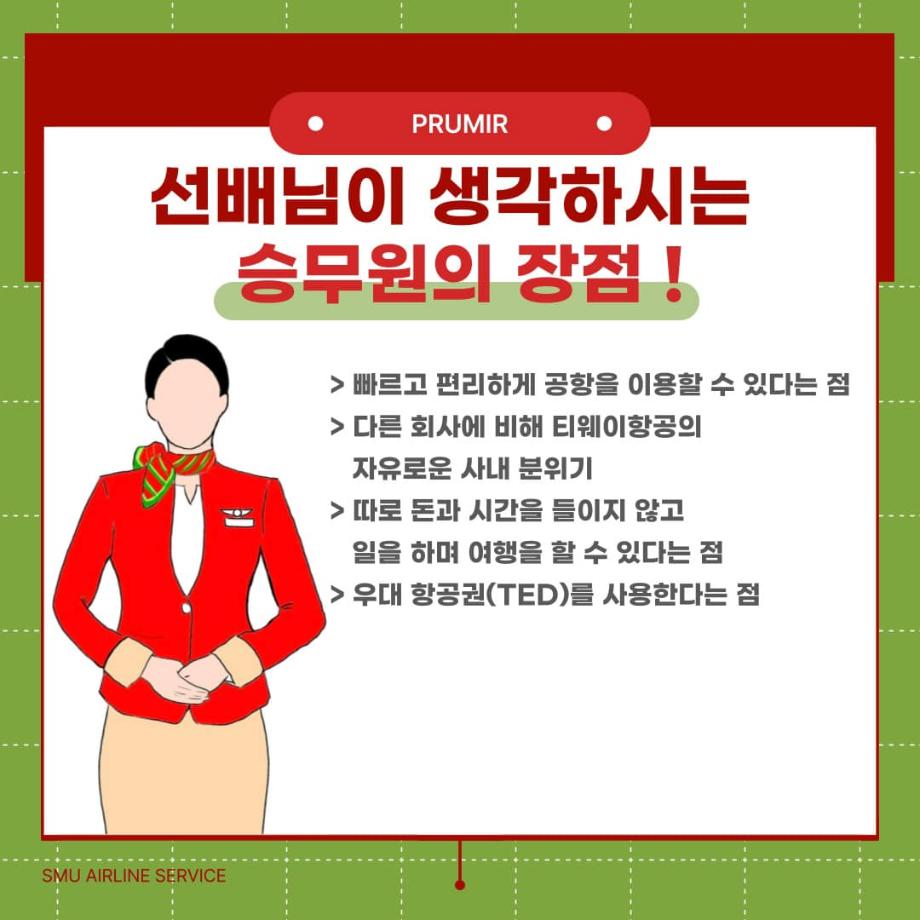 지난 11월 17일, 세명대학교 항공서비스학과를 졸업하신 후 ❤️티웨이항공의 객실승무원❤️으로 취업하신 선배님의 특강이 진행되었습니다 📑