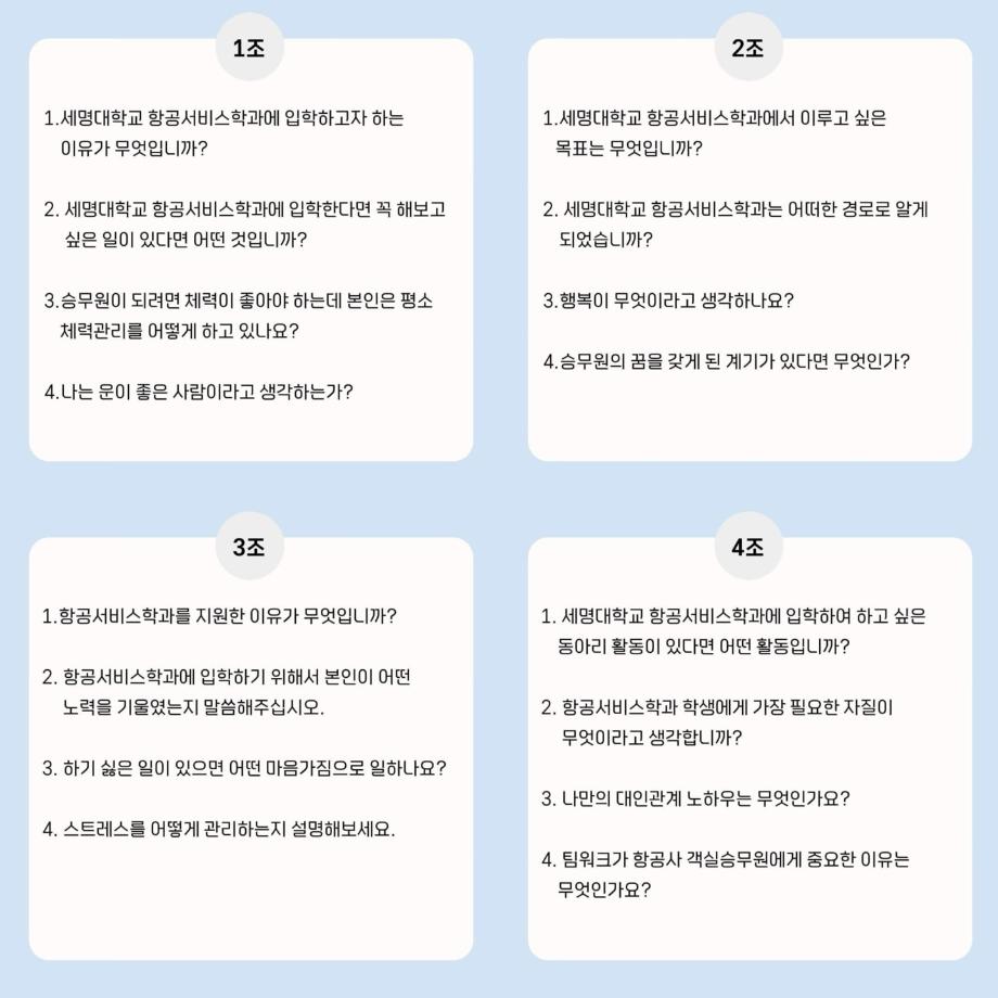 조별로 총 4문제가 공개되었으며 답변은 30초 이내로 해주시면 됩니다☺️