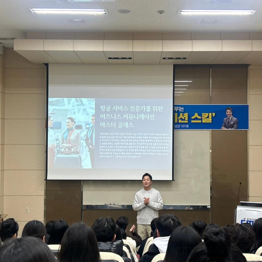 학생들을 위해 좋은 자리를 마련해 주신 저희 세명대학교 항공서비스학과 교수님께 진심으로 감사드리며 먼 길 걸음해주신 이성배 아나운서님께도 진심으로 감사합니다