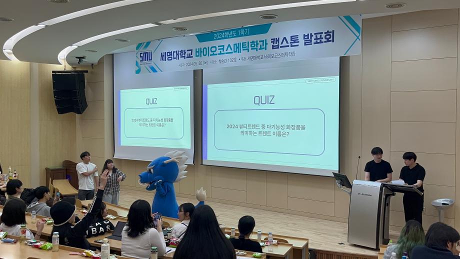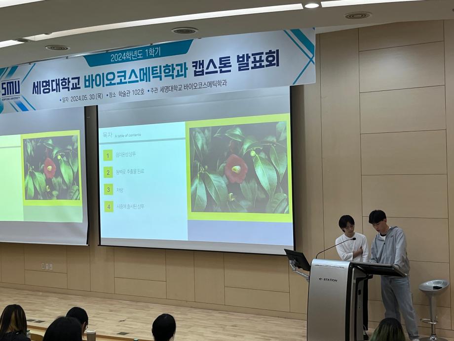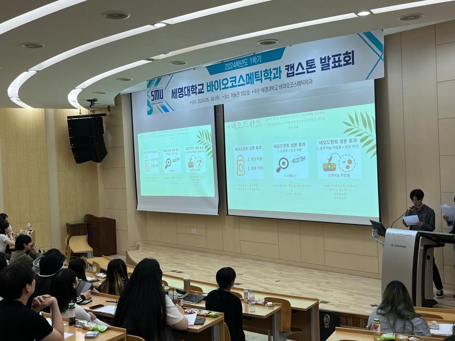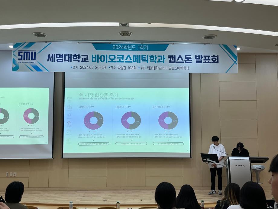 본문 시작 홈으로 학과소개 학과소개 학과과정 대학원 커뮤니티 연구동아리 홈페이지가이드 학과행사 학과개요 학과장인사말 학과연혁 졸업 후 진로 교수소개 학과행사 학과행사 페이스북 트위터 프린트 2024학년도 1학기 바이오코스메틱학과 캡스톤발표회 바이오코스메틱학과 2364 2024-05-31 2024년 05월 30일 학술관 102호에서 바이오코스메틱학과 캡스톤 발표회를 진행하였습니다. 각자 준비한 발표자료를 가지고 학우들과 교류하며 발표,질의,응답등을 진행하였으며 학우들과 전공에 대한 지식을 나눌 수 있는 좋은 기회였습니다. 목록 이전2024학년도 바이오코스메틱학과 스승의날 행사 다음 2025학년도 학과 M.T 만족도조사 만족도 조사 이 페이지에서 제공하는 정보에 대하여 만족하시나요? 매우만족 만족 보통 불만족 매우불만족
