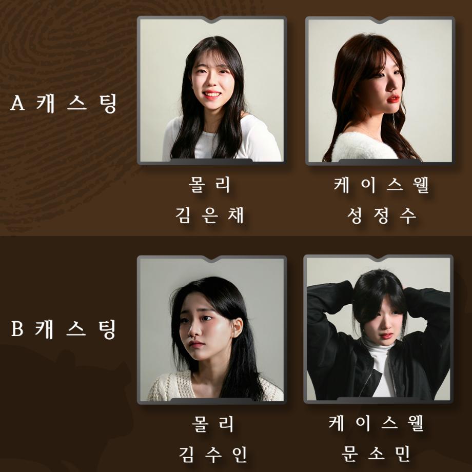 본문 시작 홈으로 학과과정 학과소개 입학정보 교수소개 학과과정 커뮤니티 공연예매 안내 홈페이지가이드 비교과프로그램 교육과정 전공교육 체계도 비교과프로그램 MOU 체결 하계, 동계 프로젝트 하계, 동계 프로젝트 연극놀이 지도사 양성 교육 현장실습 프로그램 액팅플러스 하계, 동계 프로젝트 페이스북 트위터 프린트 연기예술학과 104회 정기공연 동계 프로젝트 <쥐덫> 캐스트 연기예술학과 3096 2024-02-28 "자, 다들 모여보세요. 제가 범인을 찾았습니다." - 공연일시ᅠ A CAST 03.02(토) 15:00 03.03(일) 18:00 B CAST 03.02(토) 19:00 03.03(일) 14:00 세명대학교 공학관 5층, 태양아트홀 - 첫 번째 작품 | 올모스트 메인 두 번째 작품 | 쥐덫 세 번째 작품 | 천국으로 가는 길 예매링크는 해당 인스타 소개글에서 확인할 수 있습니다. 목록 이전연기예술학과 104회 정기공연 동계 프로젝트 <쥐덫> 포스터 다음 연기예술학과 104회 정기공연 동계 프로젝트 <쥐덫> 대본 리딩 연습 스케치 영상 만족도조사 만족도 조사 이 페이지에서 제공하는 정보에 대하여 만족하시나요? 매우만족 만족 보통 불만족 매우불만족