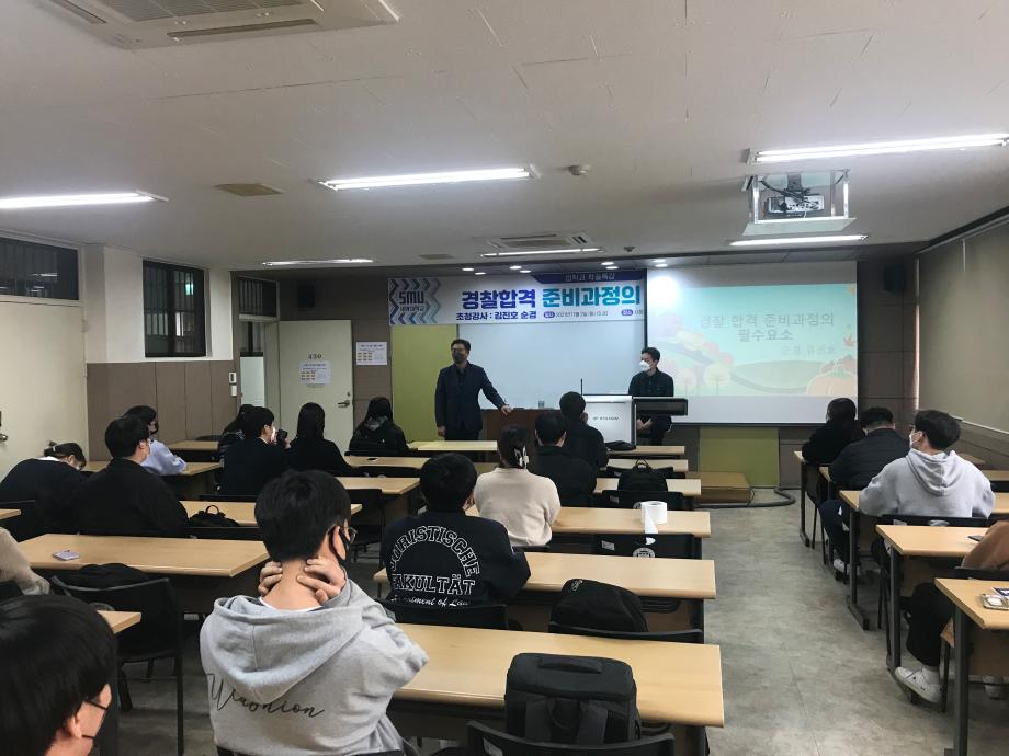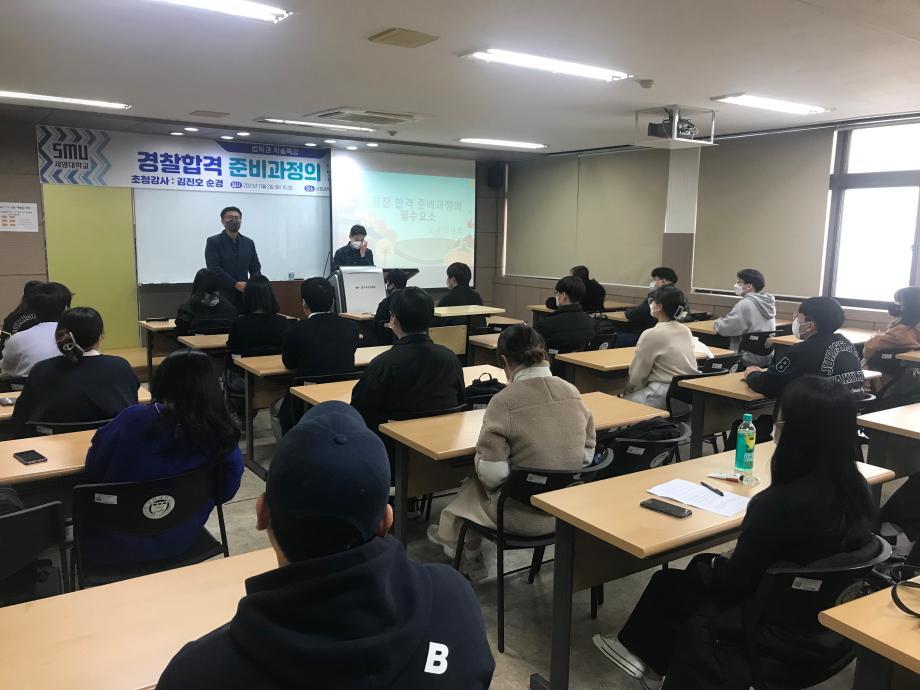 본문 시작 홈으로 학과과정 학과안내 교수소개 학과과정 커뮤니티 홈페이지가이드 비교과프로그램 교육과정 전공교육 체계도 대학원 법학과 비교과프로그램 학사일정 공공법무 지원프로그램 공공법무 지원프로그램 기업법무 지원프로그램 공공법무 지원프로그램 페이스북 트위터 프린트 2021.11.02 경찰 공무원 특강 법학과 3271 2021-11-02 2021년 11월 2일 충주경찰서 사이버수사대 소속 김진호 선배님을 모시고 ' 경찰합격 준비과정의 필수요소' 이라는 주제로 특강을 진행하였습니다. 목록 다음 2021. 11. 03 변호사 특강 담당부서 : 법학과 담당자 : - 연락처 : 043-649-1764 최종수정일 : 2024-10-26 만족도조사 만족도 조사 이 페이지에서 제공하는 정보에 대하여 만족하시나요? 매우만족 만족 보통 불만족 매우불만족