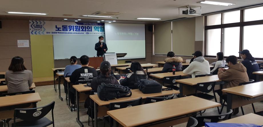 본문 시작 홈으로 학과과정 학과안내 교수소개 학과과정 커뮤니티 홈페이지가이드 비교과프로그램 교육과정 전공교육 체계도 대학원 법학과 비교과프로그램 학사일정 기업법무 지원프로그램 공공법무 지원프로그램 기업법무 지원프로그램 기업법무 지원프로그램 페이스북 트위터 프린트 2021. 12. 2. 노무사 특강 법학과 2973 2021-12-02 2021년 12월 2일 경북지방노동위원회 사무국장을 맡고 계시는 김성권 노무사님을 모시고 ' 노동위원회의 역할과 기능' 이라는 주제로 특강을 진행하였습니다. ※본 특강은 코로나19 방역 수칙을 준수하여 진행하였습니다.※ 목록 다음 2021 12. 3. 신변보호사 자격증(2차) 이전2021. 11. 26. 신변보호사 자격증(1차) 담당부서 : 법학과 담당자 : - 연락처 : 043-649-1764 최종수정일 : 2024-10-26 만족도조사 만족도 조사 이 페이지에서 제공하는 정보에 대하여 만족하시나요? 매우만족 만족 보통 불만족 매우불만족