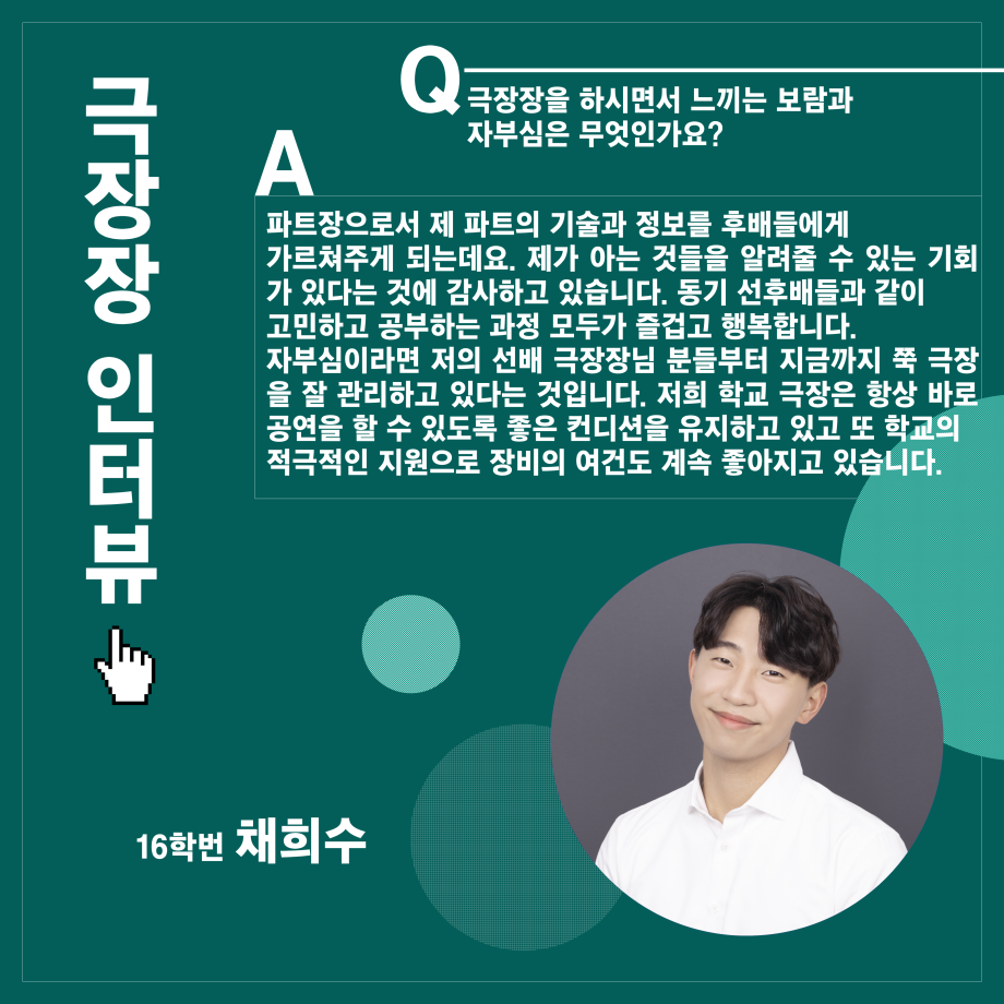 본문 시작 홈으로 학과소개 학과소개 입학정보 교수소개 학과과정 커뮤니티 공연예매 안내 홈페이지가이드 진로 학과개요 학과장인사말 학과연혁 세명대학교 민송아트홀 학과행사 진로 진로 페이스북 트위터 프린트 연기예술학과 극장장 인터뷰 연기예술학과 2450 2021-12-28 목록 이전연기예술학과 음향장 인터뷰 다음 연기예술학과 무대장 인터뷰 만족도조사 만족도 조사 이 페이지에서 제공하는 정보에 대하여 만족하시나요? 매우만족 만족 보통 불만족 매우불만족