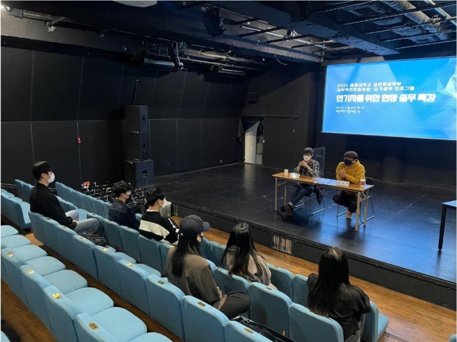 본문 시작 홈으로 학과소개 학과소개 입학정보 교수소개 학과과정 커뮤니티 공연예매 안내 홈페이지가이드 진로 학과개요 학과장인사말 학과연혁 세명대학교 민송아트홀 학과행사 진로 진로 페이스북 트위터 프린트 연기예술학과 3차 현장 실무 특강 연기예술학과 3898 2022-01-20 강사 : 김재록 전윤찬 배우 김재록 / PD 전윤찬 분들의 알차고 유익했던 특강은 많은 학생들이 현장 실무에 대하여 폭 넓게 배울 수 있는 시간이었습니다. 앞으로 더욱 성장할 수 있는 세명대학교 연기예술학과가 되겠습니다! 강연을 도와주신분들께 진심으로 감사의 인사를 올립니다. 목록 이전연기예술학과 2차 현장 실무 특강 다음 세명대학교 연기예술학과, '엔터테인먼트 디자인' 연계전공 운영 만족도조사 만족도 조사 이 페이지에서 제공하는 정보에 대하여 만족하시나요? 매우만족 만족 보통 불만족 매우불만족