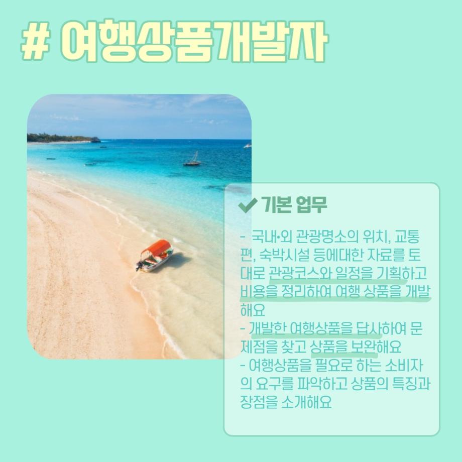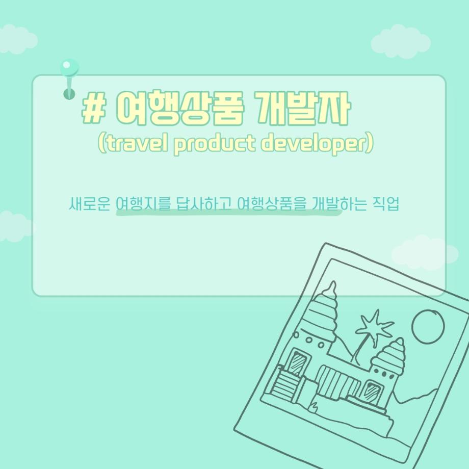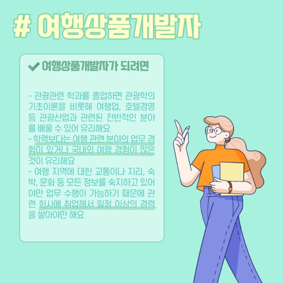본문 시작 홈으로 머글 한줌단 학과안내 교수소개 교육과정 커뮤니티 머글 한줌단 홈페이지가이드 진로? 무물!! 어쩔 TV 저쩔 TV 진로? 무물!! TM Youtube TM Instagram TM Blog TM Facebook 진로? 무물!! 페이스북 트위터 프린트 여행상품개발자 관광경영학과 3109 2022-06-02 여행상품개발자(Travel Product Developer) 목록 이전항공사 승무원 (Steward / Stewardess) 다음 문화관광해설사(Cultural Heritage Guide) 만족도조사 만족도 조사 이 페이지에서 제공하는 정보에 대하여 만족하시나요? 매우만족 만족 보통 불만족 매우불만족