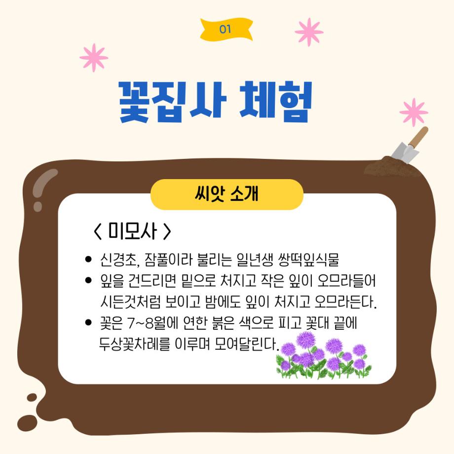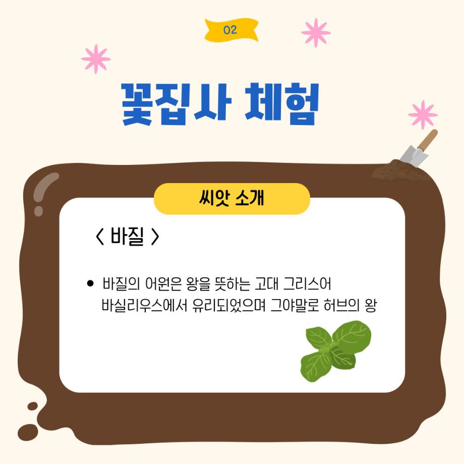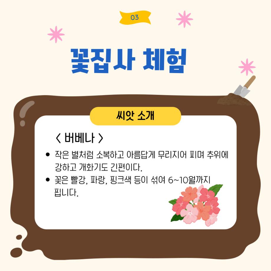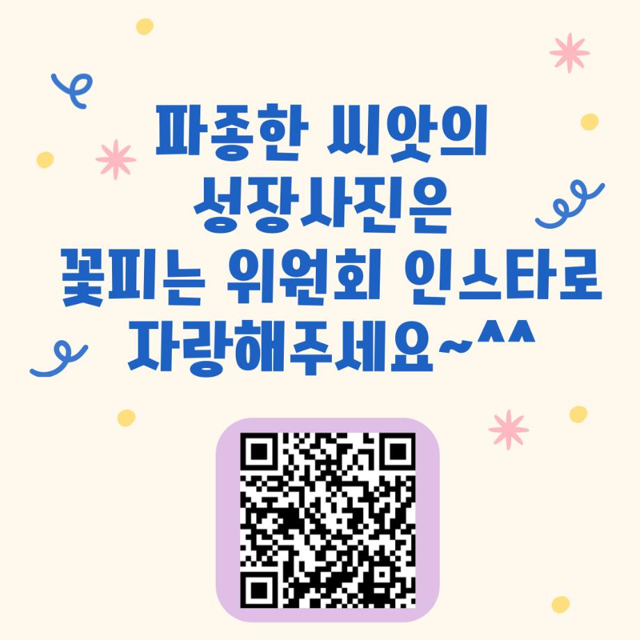 본문 시작 홈으로 포토갤러리 학생위원회 개요 학생위원회 소개 공지사항 활동결과 홈페이지가이드 포토갤러리 페이스북 트위터 프린트 [꽃피는 위원회] 제 4회 사랑의 꽃집사 체험이벤트 학생처 994 2025-05-28 [꽃피는 위원회] 제 4회 사랑의 꽃집사 체험이벤트 1. 일시: 5월 22일 12시~15시 2. 장소: 학생회관 앞 광장 3. 참여인원: 본교 구성원 114명 참여 4. 행사내용: 랜덤돌리기를 통한 씨앗 선정 후 씨앗 파종 진행, 참여완료자에 한해 만족도 조사 실시 5. 행사 만족도 조사 : 4.9/5.0 목록 이전[약속하는 위원회] 달려라 에코레이서 다음 [생각하는 위원회] 대형 현수막 문구 공모전 'Hear, 위로' 담당부서 : 장학복지팀 담당자 : - 연락처 : 043-649-1142 최종수정일 : 2024-10-26 만족도조사 만족도 조사 이 페이지에서 제공하는 정보에 대하여 만족하시나요? 매우만족 만족 보통 불만족 매우불만족