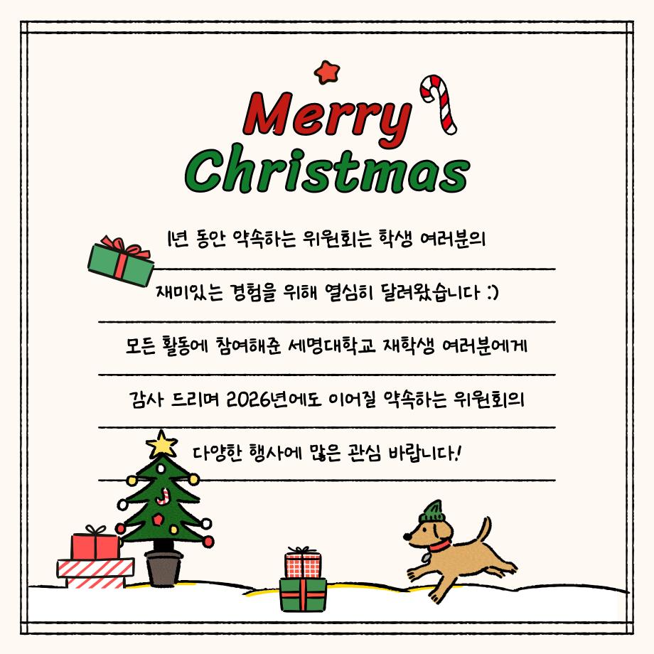 본문 시작 홈으로 포토갤러리 학생위원회 개요 학생위원회 소개 공지사항 활동결과 홈페이지가이드 포토갤러리 페이스북 트위터 프린트 [약속하는,생각하는 위원회] 세명파티시에 학술정보원 242 2025-11-17 안녕하세요 재미있는 경험을 위한 학생위원회 '약속하는 위원회' 입니다! 약속하는 위원회 행사인 세명 파티시에 활동이 성황리에 마무리 되었습니다 :) [세명 파티시에 행사 결과] 일시: 2025년 11월 11일(월) ~ 11월 12일(화) 장소: 도서관 1층 로비 행사 참여자: 85명 1년 동안 약속하는 위원회와 함께 해주셔서 감사드리며, 추후에 이어질 약속하는 위원회 활동에도 많은 관심 바랍니다!! 목록 이전[꽃피는 위원회] 꽃 돌려라 피어라 다음 [생각하는 위원회] 담당부서 : 장학복지팀 담당자 : - 연락처 : 043-649-1142 최종수정일 : 2024-10-26 만족도조사 만족도 조사 이 페이지에서 제공하는 정보에 대하여 만족하시나요? 매우만족 만족 보통 불만족 매우불만족