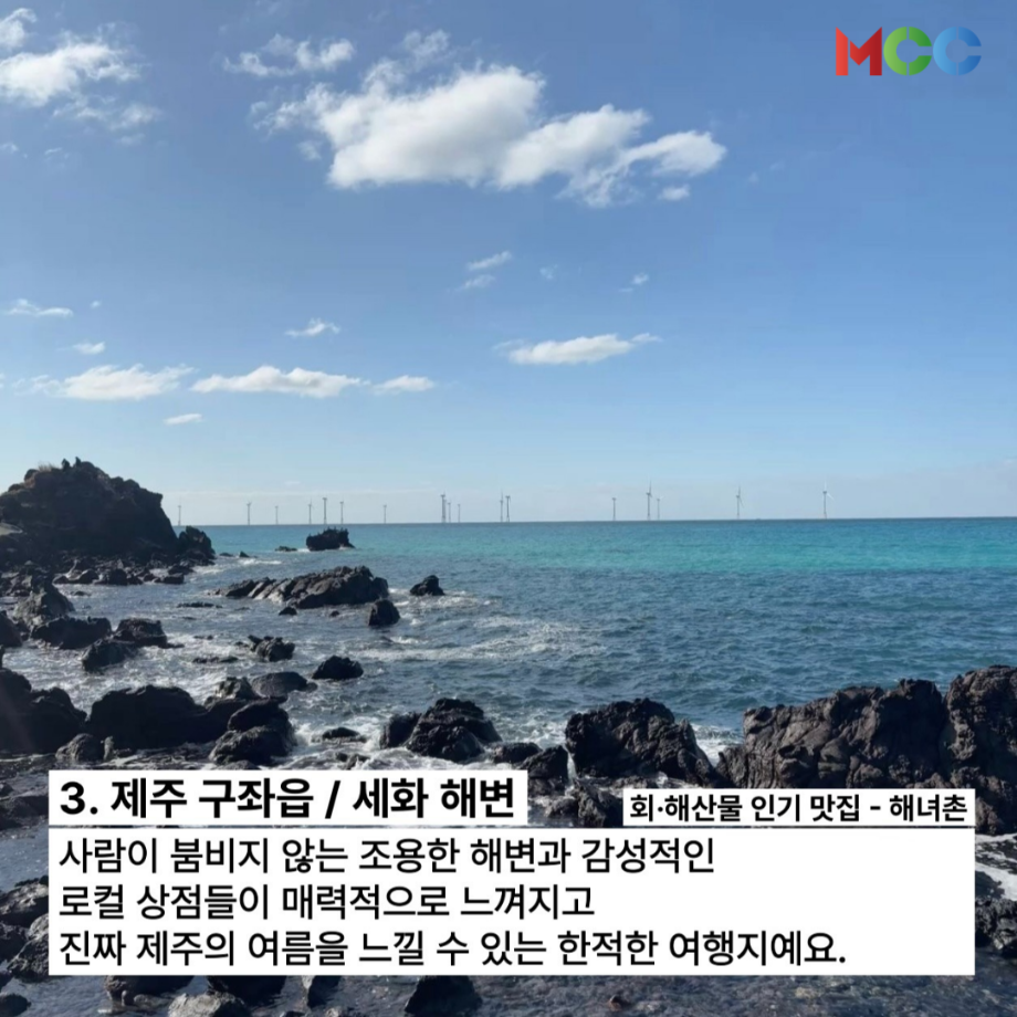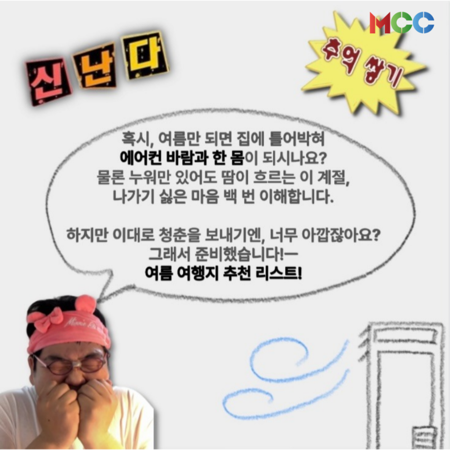 본문 시작 홈으로 MCC News 학과소개 교수소개 학과과정 MCC News MCC SNS 홈페이지가이드 미디어 정보통 학과 및 재학생 교수 및 졸업생 미디어 정보통 미디어 정보통 페이스북 트위터 프린트 여름방학 갈만한 여행지 추천.zip 미디어콘텐츠창작학과 630 2025-07-07 “놀러가고 싶다 격하게..!”😩 🌞여름방학 갈만한 여행지 추천.zip🌞 1.강릉 인목해변 2.통영 욕지도/동피랑마을 3.제주 구좌읍/세화 해변 4.서울 노들섬&한강공원 5.속초 외옹치해변 자세한 내용은 미콘창 인스타그램에서 확인해주세요 @smu_mcc 목록 다음 2025 친환경 에너지 콘텐츠 공모전 다음 미디어콘텐츠창작학과 궁금해?! 담당부서 : 미디어콘텐츠창작학과 담당자 : - 연락처 : 043-649-1741 최종수정일 : 2024-10-26 만족도조사 만족도 조사 이 페이지에서 제공하는 정보에 대하여 만족하시나요? 매우만족 만족 보통 불만족 매우불만족
