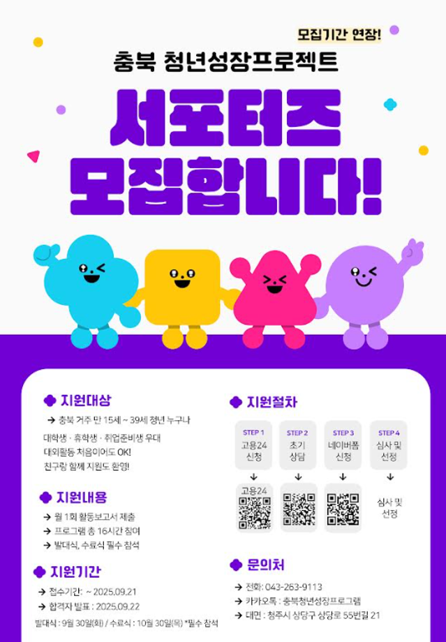 본문 시작 홈으로 MCC News 학과소개 교수소개 학과과정 MCC News MCC SNS 홈페이지가이드 미디어 정보통 학과 및 재학생 교수 및 졸업생 미디어 정보통 미디어 정보통 페이스북 트위터 프린트 충북 청년성장프로젝트 안내 미디어콘텐츠창작학과 643 2025-09-16 충북 청년성장프로젝트 안내해드립니다. 목록 이전2025학년도 2학기 원어민 교수와의 대화 이전「2025년 농업·농촌 영상·사진 공모전」 담당부서 : 미디어콘텐츠창작학과 담당자 : - 연락처 : 043-649-1741 최종수정일 : 2024-10-26 만족도조사 만족도 조사 이 페이지에서 제공하는 정보에 대하여 만족하시나요? 매우만족 만족 보통 불만족 매우불만족