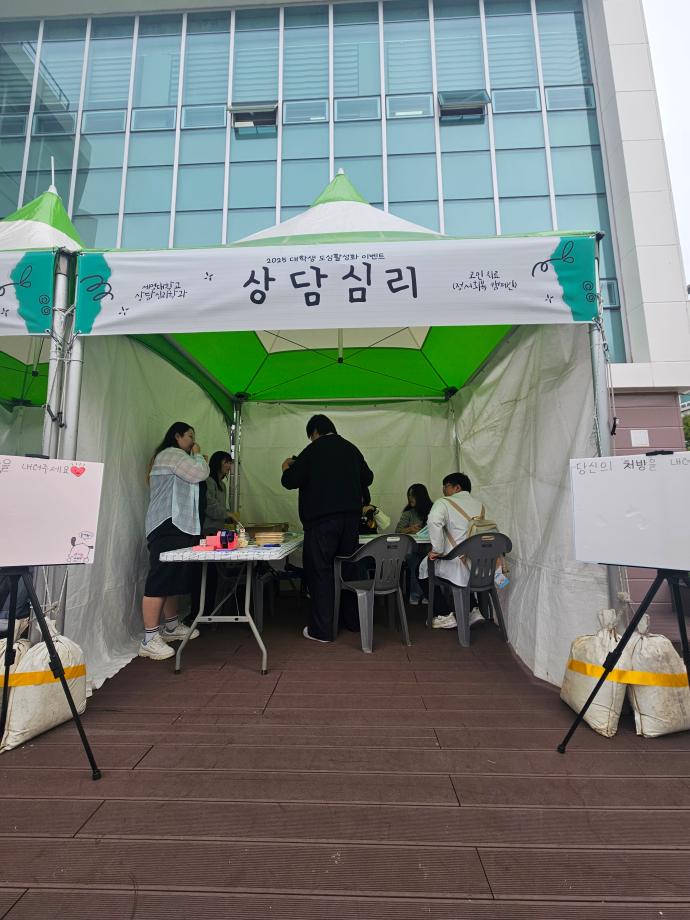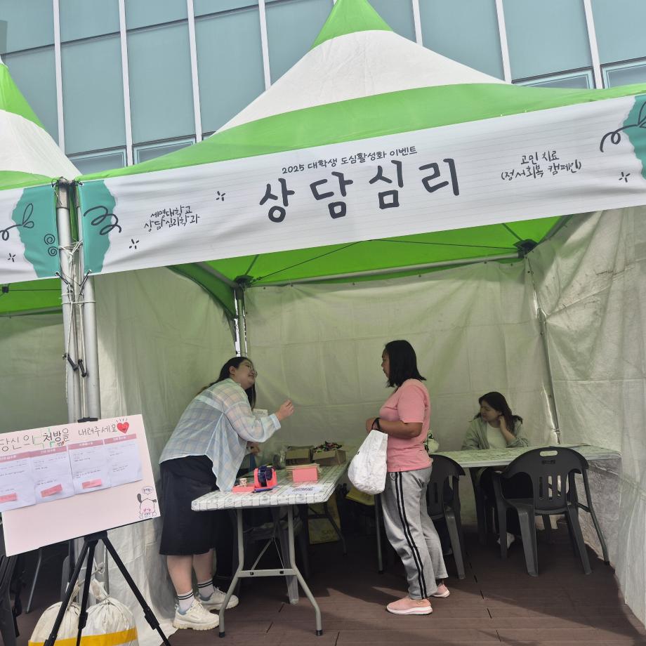 본문 시작 홈으로 학과 커뮤니티 학부소개 교수소개 교육목표 입학안내 학과 커뮤니티 대학원 커뮤니티 홈페이지가이드 학과 갤러리 학과소식 학사일정 학과 갤러리 학과 갤러리 페이스북 트위터 프린트 2025 대학생 도심활성화 이벤트 상담심리학과 307 2025-10-14 안녕하세요 세명대학교 상담심리학과입니다! 9월 30일에 진행된 2025 대학생 도심활성화 행사에서 상담심리학과 학생들이 '마음약국'이라는 부스로 정서회복 캠페인을 진행했습니다. ( ·•︡_•︠)ʕ𐭩 다양한 사람들의 고민을 듣고 공감과 위로를 전하는 의미 있는 시간이었습니다. 앞으로 이런 기회가 더 많아지길 바라며, 큰 고민 없이 행복한 날들이 이어지길 바랍니다 :) 목록 이전GRIT 동아리 봉사활동 다음 2025학년도 Step Up! SMU창업캠프 및 경진대회 만족도조사 만족도 조사 이 페이지에서 제공하는 정보에 대하여 만족하시나요? 매우만족 만족 보통 불만족 매우불만족