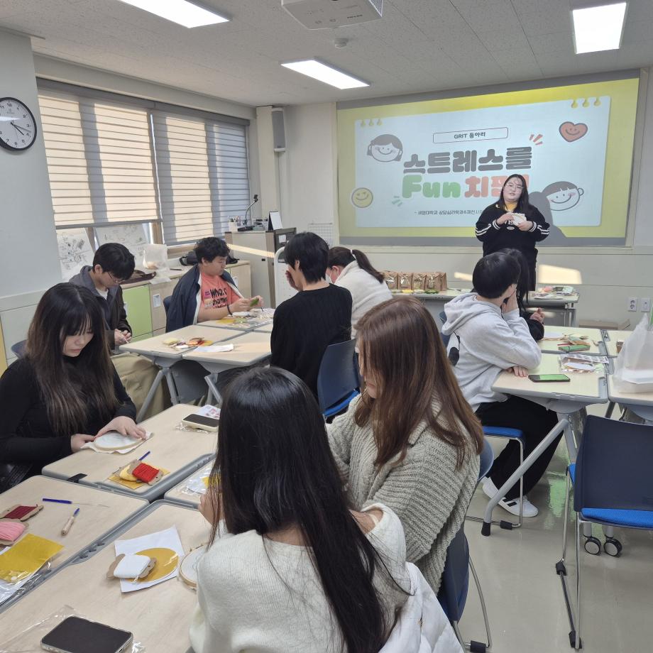 본문 시작 홈으로 학과 커뮤니티 학부소개 교수소개 교육목표 입학안내 학과 커뮤니티 대학원 커뮤니티 홈페이지가이드 학과 갤러리 학과소식 학사일정 학과 갤러리 학과 갤러리 페이스북 트위터 프린트 GRIT 동아리 봉사활동 상담심리학과 29 2025-12-23 안녕하십니까 세명대학교 상담심리학과입니다. 상담심리학과 동아리 GRIT은 제천시청소년상담센터에 방문해서 학교 밖 청소년을 대상으로 '스트레스 FUN치팝'-펀치니들 활동을 진행했습니다! 🧶🪡 펀치니들 키트로 활용해 컵받침을 만들며 학교 밖 청소년의 교우관계 증진시키고 학업 스트레스를 완화하고자 기획된 활동이었는데요! 참여 청소년들에게 따뜻한 기억으로 남았기를 바랍니다 :) 목록 이전2025학년도 2학기 기말고사 만족도조사 만족도 조사 이 페이지에서 제공하는 정보에 대하여 만족하시나요? 매우만족 만족 보통 불만족 매우불만족