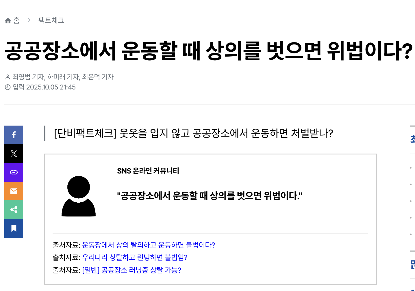네이버 지식인, 온라인 커뮤니티, 소셜미디어 등에는 “헬스장·공원 등에서 상의탈의하면 법에 걸리나요?”, “러닝할 때 웃통 벗어도 되나요?” 같은 질문이 꾸준히 올라온다.