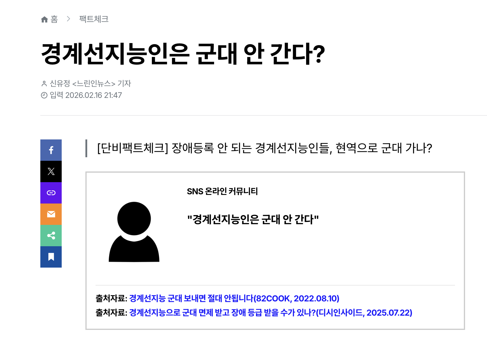 경계선지능인의 병역 이행 여부를 둘러싼 현행 법·제도와 실제 판정 사례를 바탕으로 해당 주장의 사실 여부를 검증할 필요가 있다.