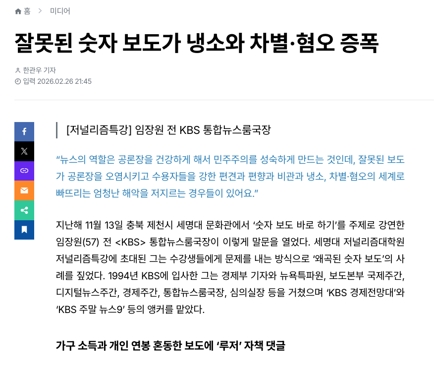 잘못된 숫자 보도가 냉소와 차별·혐오 증폭
