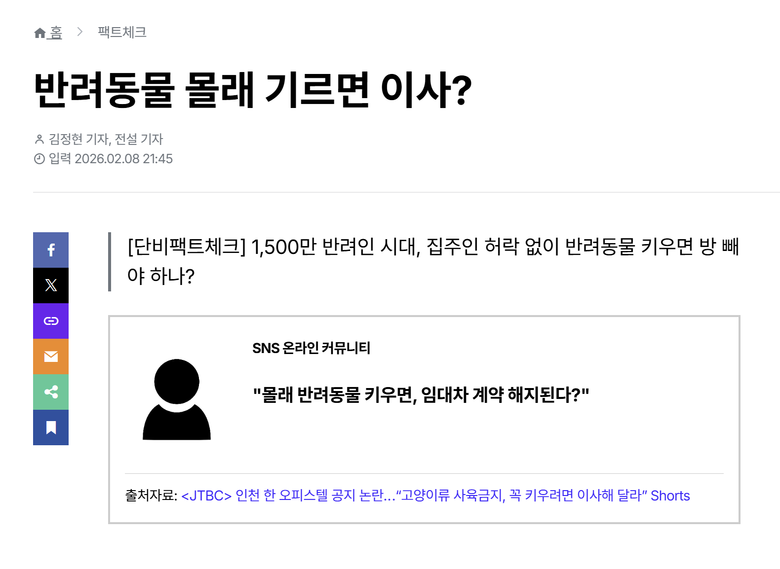 이를 두고 온라인상에서는 ‘입주민총회가 애초에 효력이 없다’ ‘반려동물을 키운다고 이사를 가라 마라 할 법적 근거가 없다’는 비판이 높았지만, ‘이미 사고 사례가 발생했으니 부당한 요청이라 할 수는 없다’는 반응도 나왔다. 임대한 주택에서 반려동물을 기르는 일로 인해 계약 해지와 이사를 요청받는 상황에 처한다면, 임차인은 요구에 따라야 할까? 집주인의 퇴거 요구는 적절한 것일까?