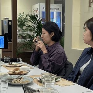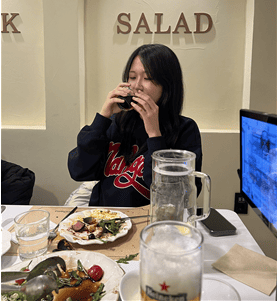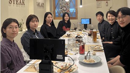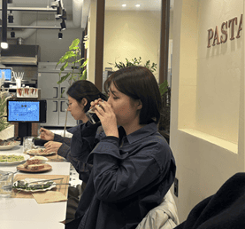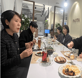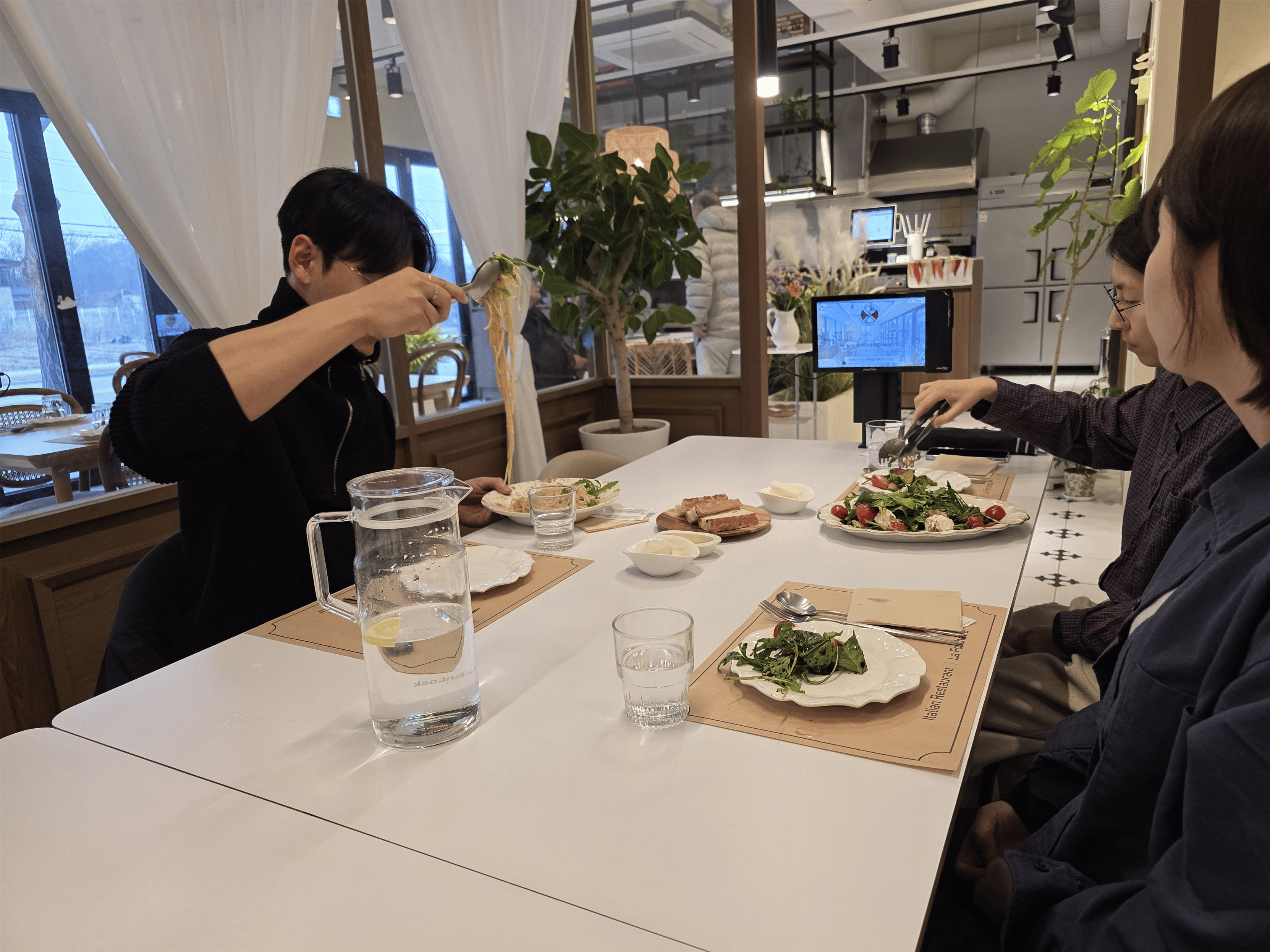 음식들을 각자 접시에 나누어 담고, 본격적으로 회식을 시작했습니다.