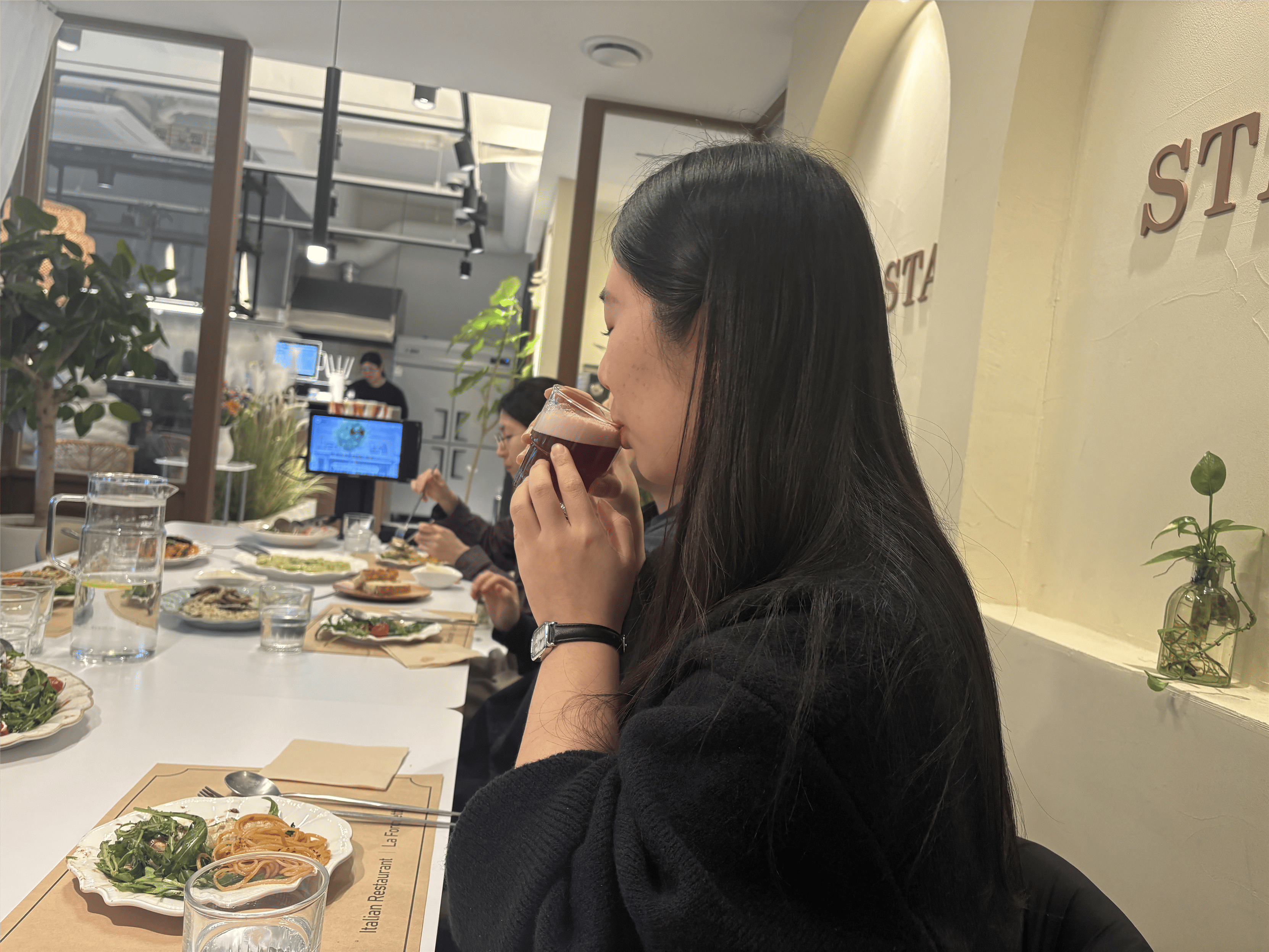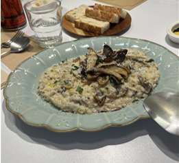 식당에 도착해 파스타, 리조또, 샐러드, 스테이크, 와인, 맥주, 콜라 등을 주문했습니다.