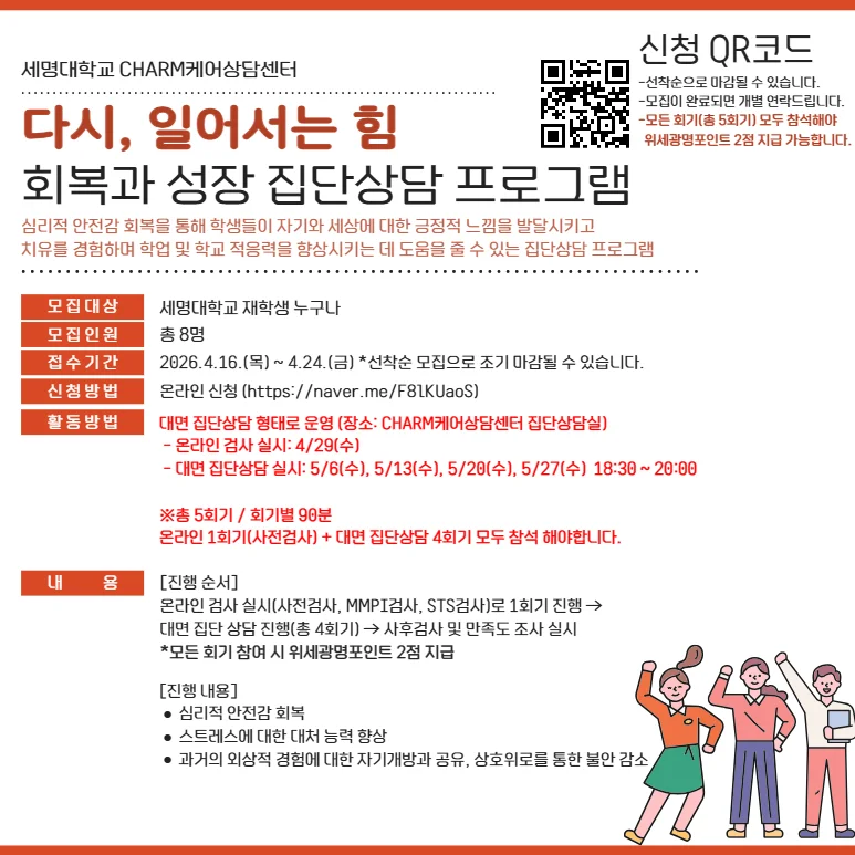 [CHARM케어상담센터] 2026학년도 회복과 성장 집단상담 프로그램 모집 안내