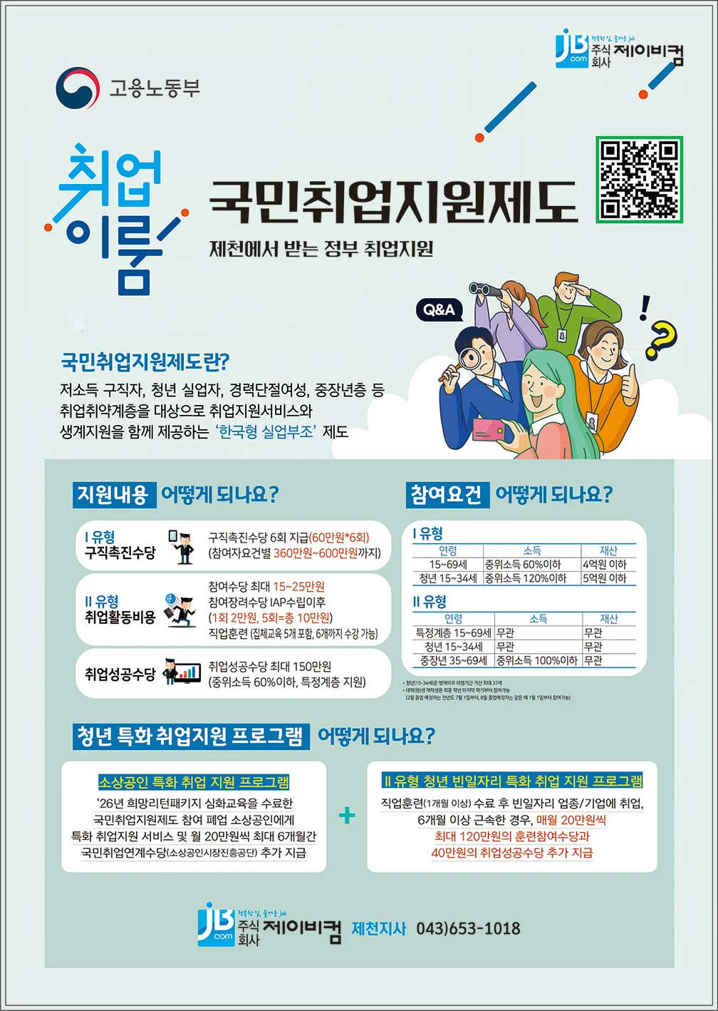 4. 국민취업지원제도 민간위탁기관 : 제이비컴 제천지사 043) 653-1018
